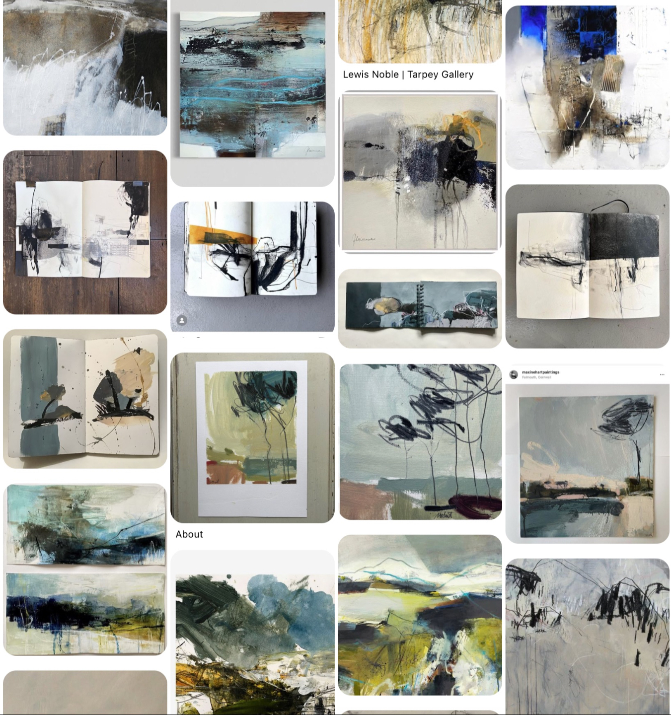 Here's your curated Pinterest mood board - a collection of wild skies, softened horizons, atmospheric marks, textural surface and abstract landscapes. Let it spark ideas, nudge imagination. Use it as a launch point, not a destination.